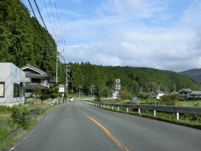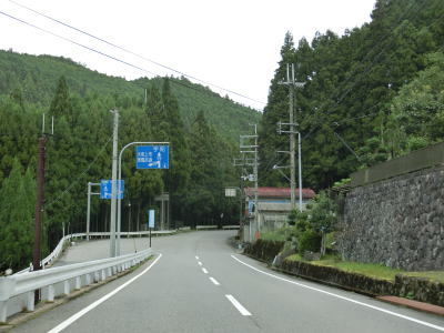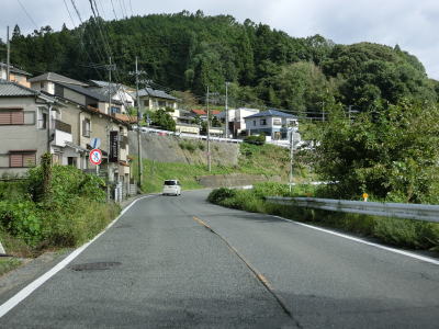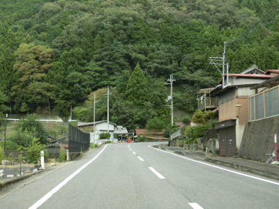 | R169宮滝大橋北詰交差点からも引き続き吉野川沿いの2車線道路が続く。谷筋とは言え大きな河川の開けた谷筋のため明るい雰囲気で概ね走りやすい道路状況である。南大野集落に入るとセンターラインがなくなり道幅も1.8車線幅と狭くなってしまう。 | ||