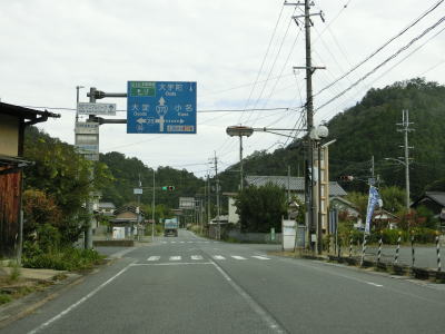 | 色生集落を通り過ぎると蛇行している津風呂川を何ヶ所も渡りながら谷筋を走る。奈良r28三茶屋交差点を通過するが、右折方向は小名集落より東、日の森峠に点線区間があるため車両での通り抜けはできない。津風呂川沿いをさらに走ると宇陀市に入る。 | ||