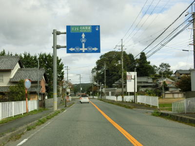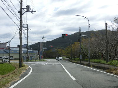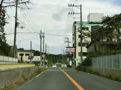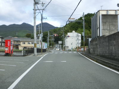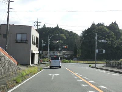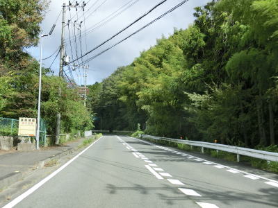 | 福地交差点からはセンターラインのない1.8車線幅道路を上って行く。200m強でバイパスとの五月ヶ丘交差点を道なりに進む。左折ではなく道なりに進むせいか案内標識は設置されていない。 | ||