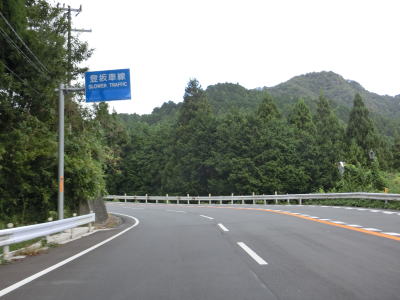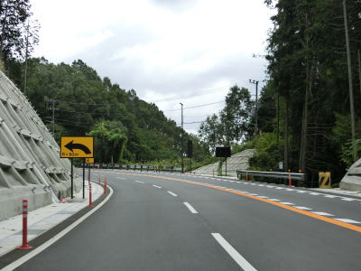 | バイパスに合流するとセンターライン付きの2車線道路となり、引き続き勾配を上る。市道との玉立橋東詰交差点を過ぎると登坂車線が現れる。以前は600mに満たない延長だったが、改良工事が行われて香酔峠側の登坂車線と繋げられて1.7kmにまで伸びている。 | ||