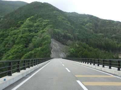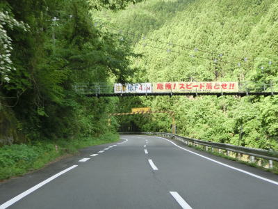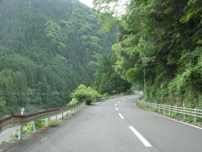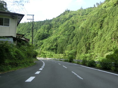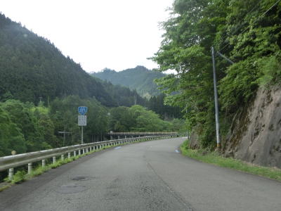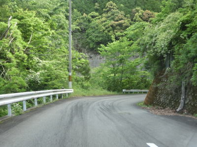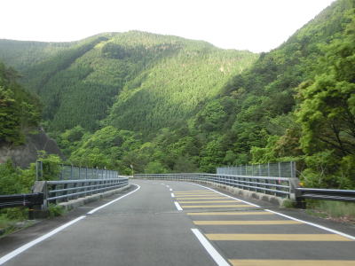 | 左カーブの先で宮代トンネルをくぐって小原橋を渡る。その後しばらくは日高川の右岸を走る。カーブが多いもののほぼ平坦で交通量の少ない2車線道路とあって走りにくさはあまり感じない。 | ||
