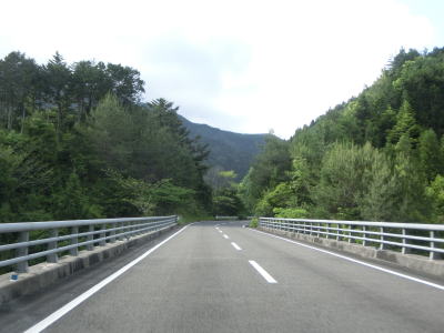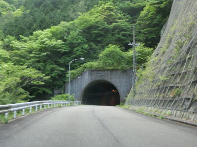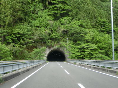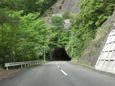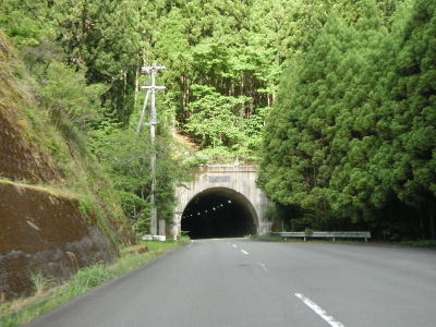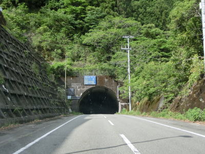 | 龍神四バイパス区間が終わってからも消えかけているとはいえセンターライン付きの2車線道路が続いている。交通量は少ないはずだがセンターラインが消えかけているのは整備の手が行き届いていないせいもあるだろう。緩やかなS字カーブを曲がった先で笠塔トンネルをくぐる。トンネルを出てからも複数の橋梁を渡りながら2車線道路を走る。 | ||