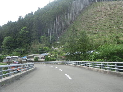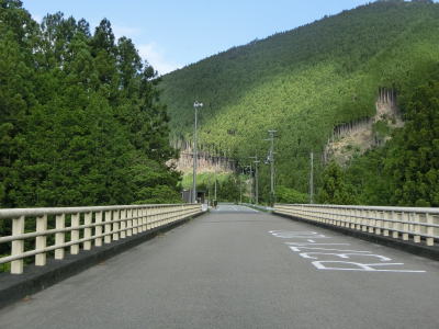 | 丹生ノ川に沿った平坦な狭路を走る。端点から約6.0kmで交差点を右折して宮前大橋を渡る。この交差点にも案内標識が設置されておらず、事前にルートを確認していないと直進してしまう可能性が高い。なお、龍神四バイパスが供用される以前は約2.2km先で南に向かう市道を経由する必要があった。 | ||