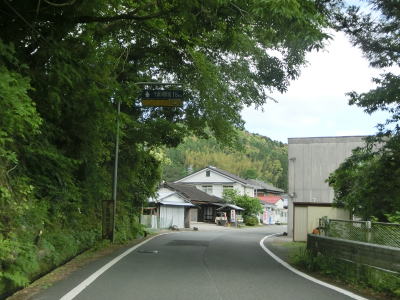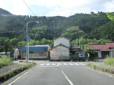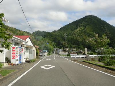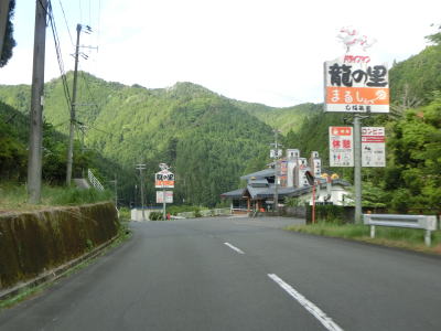 | 龍神交差点から約1.0km走ると和歌山r735との交差点に至るが、R371は右折しなければならない。信号機も案内標識も設置されていないため直進してしまう可能性が非常に高い交差点である。飲料用の自動販売機が並ぶ商店(跡?)の前を右折である。 | ||