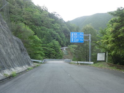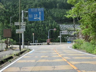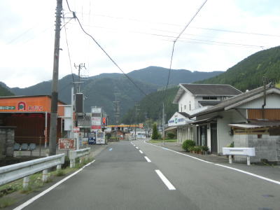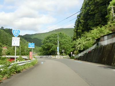 | 旧龍神村の中心部を走っているとかつての村役場だった建物の前を通過し、その先でR425龍神交差点を左折する。小又川交差点からの距離は約13.6kmである。酷道と名高いR425には田辺や白浜といった地名が案内されているが、R371には地名はなく和歌山r735が表記されているだけである。 | ||