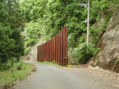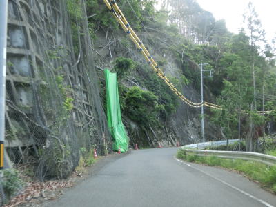| 167.和歌山r735交差点を右折 | 168.法面崩落危険箇所にグリーンシートが掛けられている | 169.法面崩落箇所 |