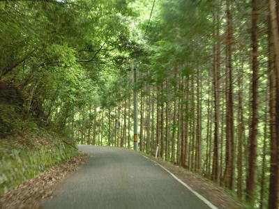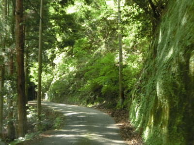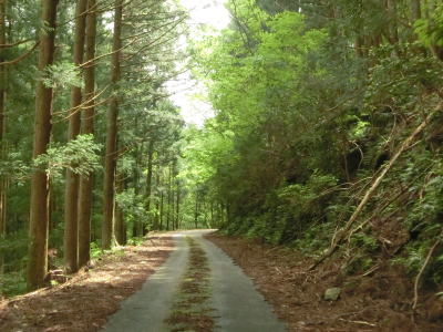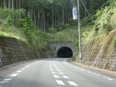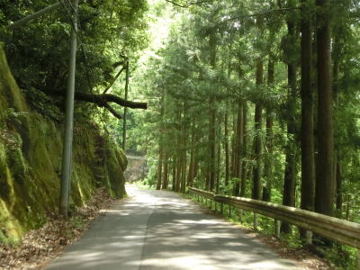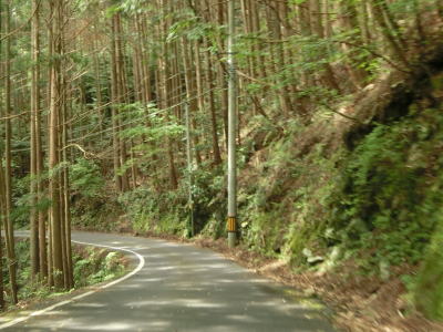 | 232.大峯隧道 | 233.市道との交差点を右折 | 234.杉林の中を走る |