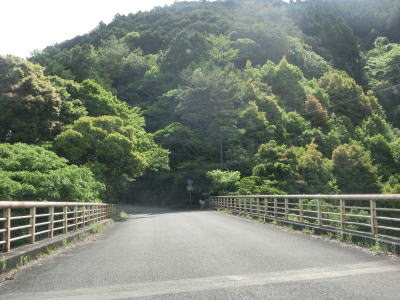 | 春日橋を渡るが橋上だけセンターラインが描かれている。日置川の右岸の狭路を走っていると川根集落や向山集落を通り抜ける。集落内は2.0車線幅と比較的広いため走りやすく感じる。 | ||