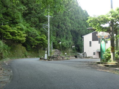 | 左の直角カーブの先で大峯隧道をくぐり、出た直後で市道との交差点に突き当たる。案内標識が設置されていないが、右方向の橋を渡る道路が国道である。左の市道を走ってもR371の端点に行く事は可能である。 | ||