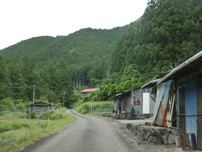 | 下露集落への市道との交差点の隣におおとう山遊館があるが、これは廃校になった三川小学校を転用した施設である。その後も前ノ川に沿った1.5車線幅の狭路が続いている。かなり山深い場所ながら集落が点在しているが、廃屋らしき家屋も見受けられる。 | ||