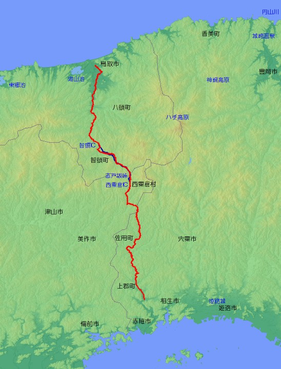 | 主な経由地 | 兵庫県赤穂市〜佐用町〜 〜岡山県美作市〜 〜鳥取県智頭町〜鳥取市 |