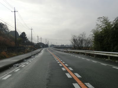 | r7交差点のすぐ先で志戸坂峠道路の橋梁の下を通過する。県境に近い位置ではあるが小さな集落が存在しており、山間部の人里離れた雰囲気は感じられない。また、上り勾配ではあるもののその勾配は緩やかと言える範疇にある。 | ||
