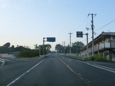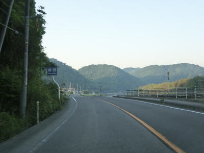 | 吉井川の左岸を走っていると異常気象時通行規制区間が終わり、小原集落に差し掛かる。川から少し離れて徐々に左にカーブして市道との交差点を2ヶ所通過した後に福本大橋で河会川を渡る。 | ||