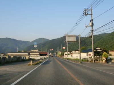 | 畑中集落を走っていると美作岡山道路の湯郷温泉ICに至る市道との交差点を通過する。2019年5月の時点では、湯郷温泉ICより南の区間は供用されていない。下倉敷集落を通り過ぎると集落が途切れるが、道路状況としては走りやすい2車線道路が続いている。 | ||