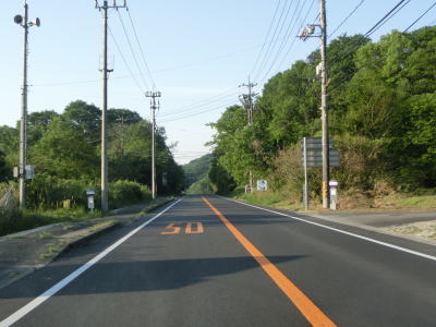 | 75.制限速度は50km/h | 76.路肩が狭くなる | 77.町道(旧道?)との交差点を通過 |
