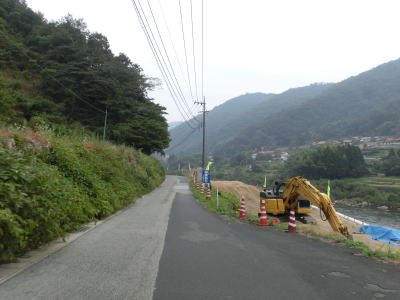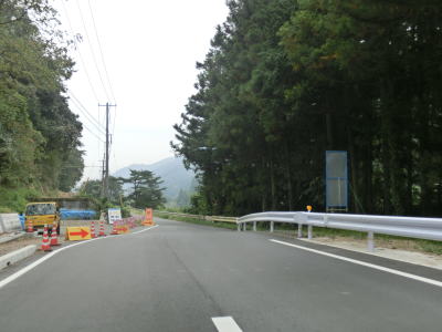 | 工事箇所以外は広いかと言えばそうでもない。広い場所があったとしてもそれは退避所としてしか使えなさそうなものである。おにぎりはR375しか立てられておらず、R433とR434が重複している事は一般人には分からないだろう。沿線に家屋がない場所でも拡幅工事が行われているが、走行した2015年10月時点ではまだまだ狭路が残っている。それでもR433とR434を走行した2014年8月に比べると改良済み区間が増えていた。 | ||