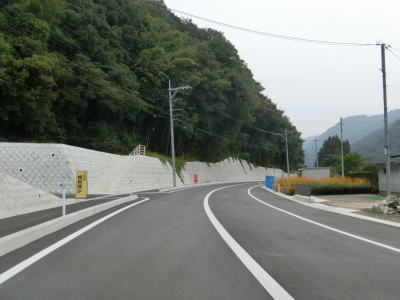 | 70.集会所らしき建物も新設されている? | 71.改良済み区間もカーブが多い | 72.狭路区間には待避所がある |