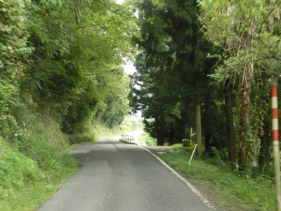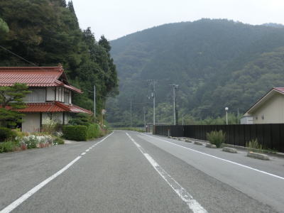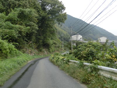 | 改良されたのは道路だけでなく集会所と思われる建物も拡幅に伴って建て替えられたようである。唐香集落では改良工事から多少時間が経過しているようでアスファルトからは新しさが失われていた。唐谷集落からはまた1.0車線と狭くなる。所々に待避所が設けられているが、往々にして待避所から離れた位置で対向車が来るものである。 | ||