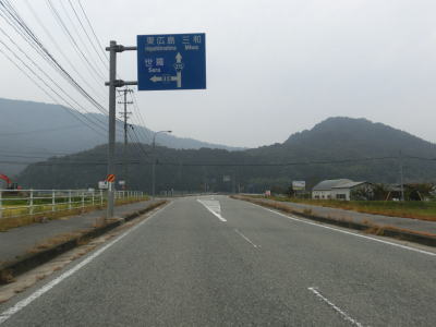 | 旧三和町域に入ってからも美波羅川流域の2車線快走路が続いている。緩やかなカーブがほとんどだが、広瀬橋の前後のS字カーブは若干急と言える。それでも見通しが良いせいもあって走りにくいと感じる程ではない。美波羅川に沿って走っていると広島r56交差点を通過し、約700m進んだ所で広島r52敷名市交差点を通過する。敷名市交差点付近は旧三和町の中心部に近いため周囲の建物が多い。 | ||