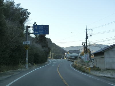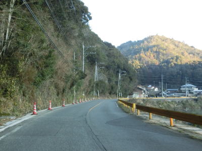 | 二宮川橋以東はカーブが多くなるものの勾配が緩やかになる。谷筋から開けた場所に出て左カーブの先で山口r24交差点に至り、左折して徳地方面に進む。直進の市道に周南の他にE2A中国道が案内されている事からも想像できるが、この先は国道よりも市道&山口r184の方が走りやすく便利でバイパス的に使われている。 | ||