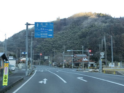| 米光集落の対岸の山裾を快走していると新米光橋を渡り、左カーブの先でR489米光交差点を通過する。ここでR489が新南陽(現在は周南市の一部)方面に分岐する。堀交差点からの距離は約11kmである。 | ||
