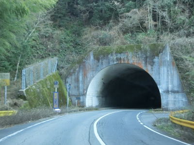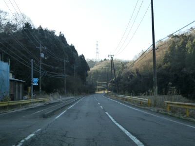 | 山口r140交差点から緩やかな勾配を上り、名もなき峠を越えて下りに転じた直後に市境を越えて岩国市に入る。緩やかなカーブが連続する2車線道路を走っていると早くも最初の集落が通り抜けてひよぢトンネルをくぐる。トンネルの名称は地名の“樋余地”が読みにくいため平仮名にしているものと思われる。 | ||