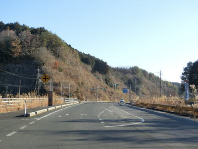 | 丸児交差点以降はもバイパス区間は続く。旧道らしき市道との交差点を過ぎてからもセンターライン付きの2車線道路のままであり走りやすい道路状況である。大久保集落を過ぎると歩道がなくなり山間部に入るためカーブが多くなるが走りにくく感じる程ではない。 | ||