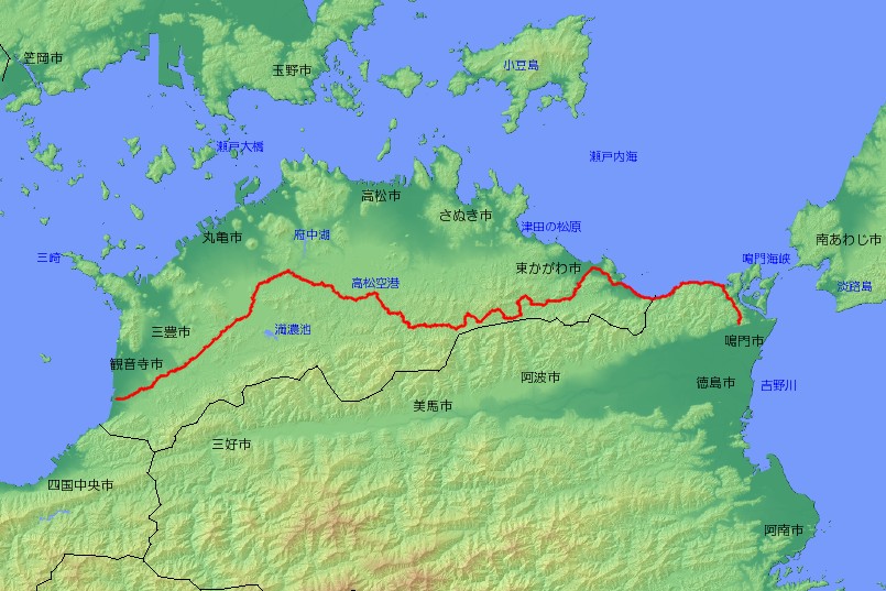 | 主な経由地 | 徳島県鳴門市〜 〜香川県東かがわ市〜三木町〜 〜香川県高松市〜綾川町〜まんのう町〜観音寺市 |
