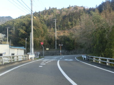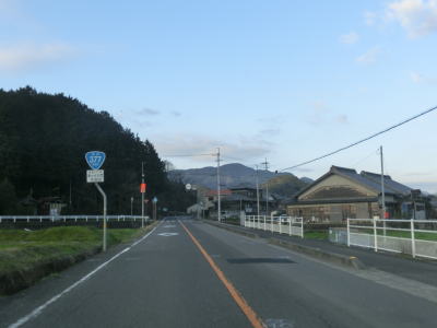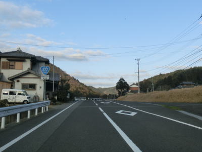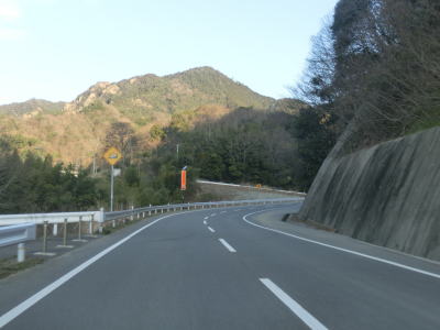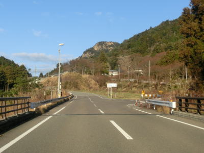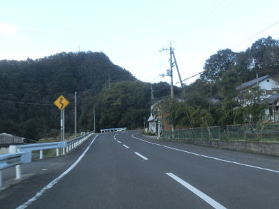 | R318・香川r40西山交差点からはR377単独区間となり、さっそくおにぎりを拝む事ができる。断続的に続く集落を結びながらカーブの多い2車線道路を西の方角に進む。沿線の家屋の数は比較的多いが、早朝と言える時間帯のため交通量は非常に少ない。しばらく湊川の右岸を走っているとS字カーブ状に蓬莱橋を渡り左岸に移る。 | ||
