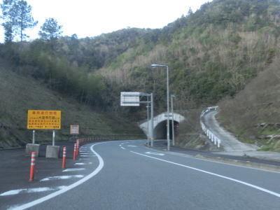 | 69.五名ダム付近よりも狭い | 70.カーブのせいで見通しが悪い | 71.トンネルが建設中 |