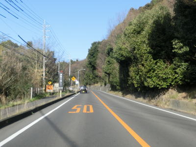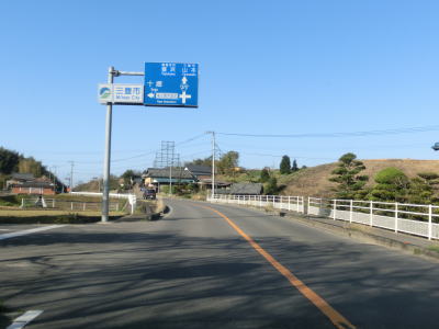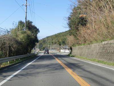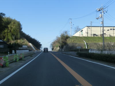 | 町境からの勾配を下り切った所で香川r23佐文交差点を通過し、緩やかな勾配を上っていると三豊市に入る。2ヶ所目のまんのう町域を通る距離は1.6km程度である。三豊市に入ってからも長閑な風景の中を走る2車線道路という点において変化はないが、アップダウンが多い。と言っても勾配は緩やかなため走りにくさはほとんど感じない。 | ||
