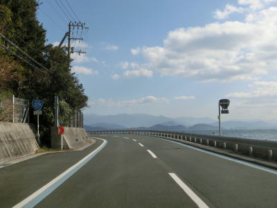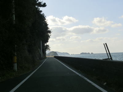 | 119.海沿いの狭路を走る | 120.相変わらず見通しの悪いカーブが多い | 121.赤崎の西は2車線 |