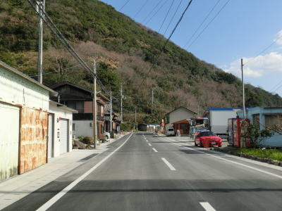 | 128.西予市三瓶町皆江 | 129.三瓶町皆江集落の西部は快走路 | 130.相変わらず広狭が混在している |