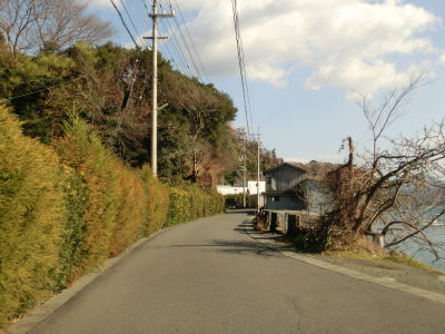 | 左ヘアピンカーブを曲がった先で明浜歴史民俗資料館の前を通るが、そこだけ歩道付きの2車線道路と整備されている。まず歩道が、次いでセンターラインがなくなって道幅も1.0〜1.5車線幅と狭くなる。その後センターライン付きの2車線道路になり、緩やかな勾配を上り標高40m前後とやや高い位置を走る。急カーブが連続しているが、交通量が少ないためさほど走りにくさを感じなかった。 | ||