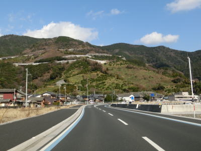 | 184.広いのは愛媛r273交差点付近のみ | 185.見えているのは法花津湾 | 186.視界が広がると道路状況も良くなる |