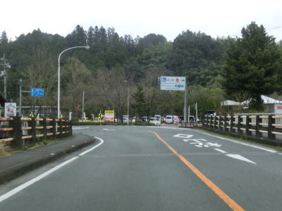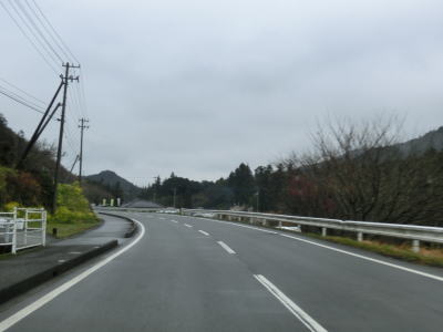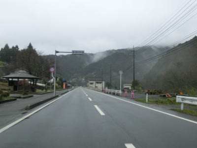 | 馬之地集落の南側を迂回するようにして通過し、勾配が緩やかになった2車線道路を快走する。二名川に架かる巻立橋を渡った東詰で愛媛r42露峰交差点を通過する。二名川の左岸の集落内を走っていると露峰休憩所を通過する。旧道と思われる町道との間に作られた休憩所で屋根付きの東屋があるものの駐車台数は乗用車数台分と広くない。 | ||