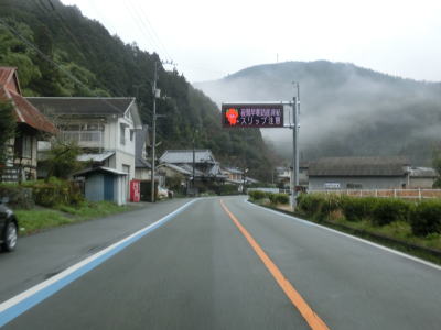 | 50.松山道 | 51.電光掲示板には愛媛県の公式キャラクターのみきゃんが表示されている | 52.蛇行する川沿いだが直線区間もある |