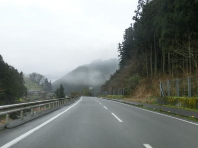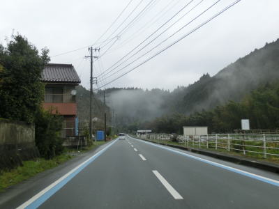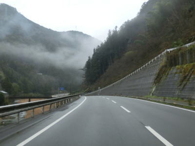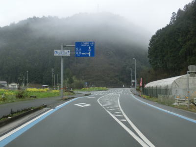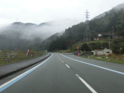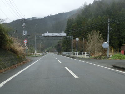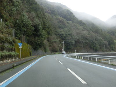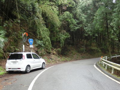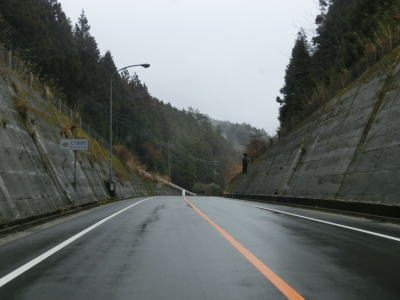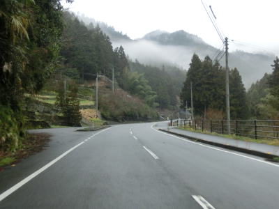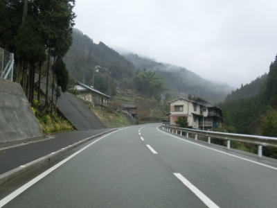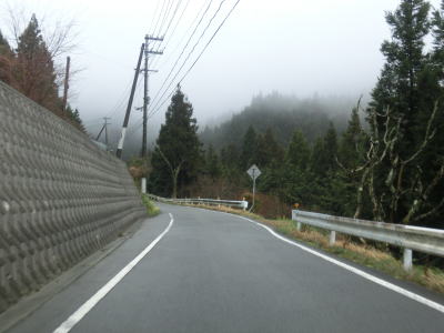 | 山肌にへばりつく1.5車線道路で泉集落を通り抜け、大平集落に入ると再び改良された2車線道路になる。が、それも長く続かず1.5車線幅に戻ってしまう。改良済みの2車線と未改良の1.5車線を繰り返す走りにくい道路状況だが、交通量は非常に少なく対向車は滅多に現れない。 | ||