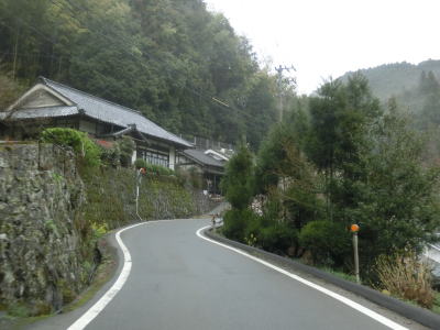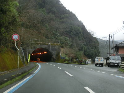 | 85.酷道区間にも意外におにぎりが多い | 86.木々のせいで薄暗い | 87.トンネルの直前まで家屋が建っている |