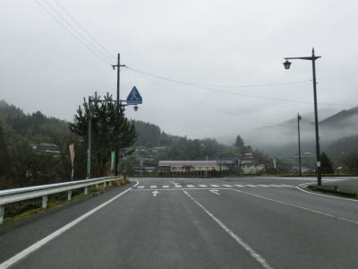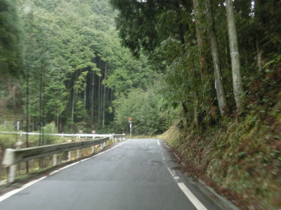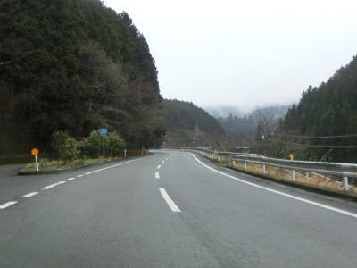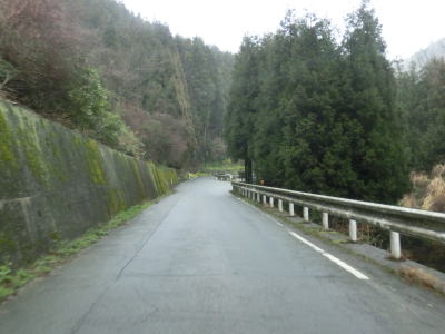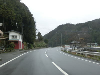 | 大平川に沿った谷筋を走っているが、高低差が大きく川が見えないため川沿いを走っているというイメージは持てない。走りやすい2車線道路で道徳集落を走っていると掛橋集落に至る町道(林道?)との交差点付近で狭くなる。 | ||
