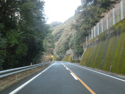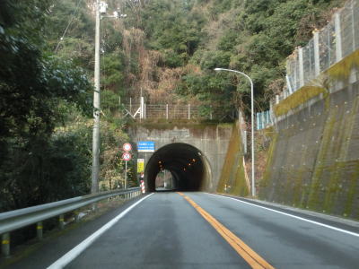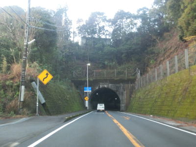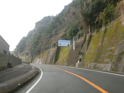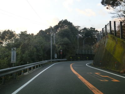 | 緩やかな右カーブを曲がった先で角谷トンネルと久保宇津トンネルを相次いで通過する。左急カーブを曲がって少し進むと前方に海が見えてくる。海を見ながら右のヘアピンカーブを曲がる。標高は50m程度なので海面との高低差が結構ある。 | ||