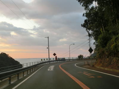 | 久礼トンネルを出て左にカーブした先で高知r25交差点を通過する。高知r320に代わって海沿い区間を走るr25だが、四万十町の大半が不通区間となっている。r25交差点から少し走ると津波浸水想定区間が終わり、以降も緩やかな上り勾配が続く。カーブは多いが2車線道路なので走りにくさは感じない。 | ||