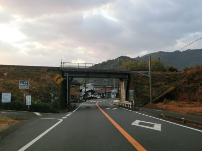 | 右にカーブすると視界が開けると同時に集落に差し掛かる。津波浸水想定区間に入ってすぐに上り勾配となり道の下跨線橋でJR土讃線をオーバーパスする。跨線橋を過ぎると左にカーブして勾配を下る。右側に並走している道路が見えるが、これは高知道であり、中土佐ICで繋がっている。 | ||