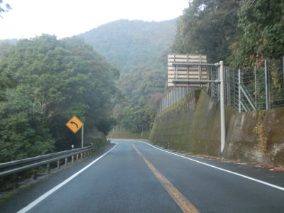 | 中土佐町に入ってからは下り勾配となるが、その他の道路状況は須崎市側と大差ない。法面工事のため片側交互通行規制が敷かれていた区間を通り過ぎ、大きく左にカーブしてJR土讃線と川を挟んで並走する形になる。焼坂休憩所を通過するが、雨露を凌げる東屋があるだけの駐車スペースである。 | ||