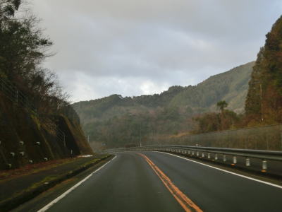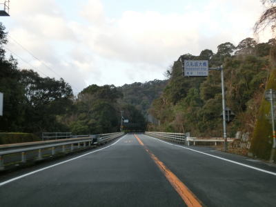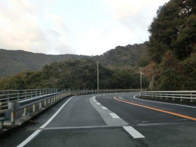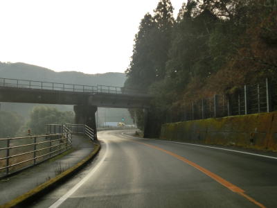 | 2ヶ所目の登坂車線が終わってすぐに久礼坂大橋を渡る。橋の左側(南側)は眺望が開けており、かなり低い位置に高知道を確認する事ができる。大きく左にカーブした後に右にカーブし、久礼坂第三トンネルをくぐる。さらに緩やかな上り勾配のカーブの多い2車線道路を走っていると久礼坂第四トンネルをくぐる。 | ||