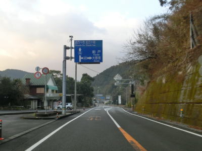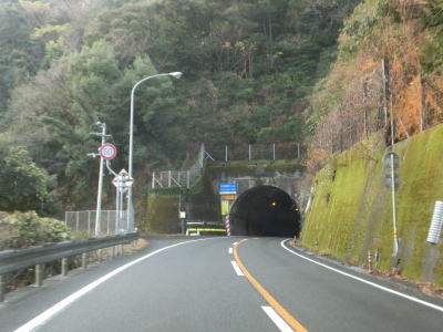 | 緩やかにアップダウンしている2車線道路を南下していると高知r41交差点を通過し、勾配を下った所で高知r320久礼交差点を通過する。r320とは2ヶ所目の交差点で、r320の行き先に中土佐町の中心部や土佐久礼駅がある。久礼交差点からは上り勾配となり、左にカーブしていると久礼トンネルをくぐる。 | ||