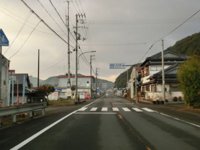 | 七子峠からの勾配は緩やかで、仁井田川の流域を下っていく。峠付近から集落が断続的に続いており、山岳区間に比べると随分走りやすく感じる。JR土讃線が接近してきた所で高知道の四万十町東ICを通過する。このインターチェンジは須崎方面としか繋がっていない。四万十町東ICから程なくして影野駅の近くを通過する。駅の周囲には多くの家屋が建っている。 | ||
