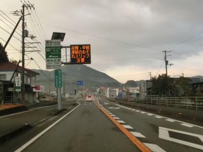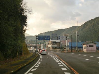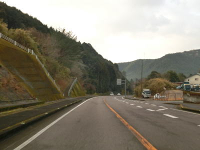 | 緩やかな勾配の直線道路を走っていると高知r320交差点を通過する。R381(実質R56)が内陸部を走るのに対して、r320が海沿いを走っている。r320交差点からは緩やかな勾配を上り、津波浸水想定区間が終わる。 | ||