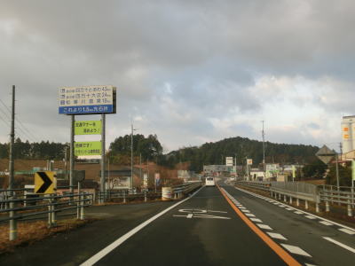 | 窪川トンネルからの下り勾配はトンネルを出てからも続いており、上りとなる反対側車線には登坂車線が設置されている。登坂車線がなくなり、吉見川を渡った先のR56古市町交差点を右折すると単独区間となる。下分甲交差点からの距離は約30kmである。 | ||