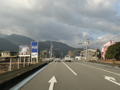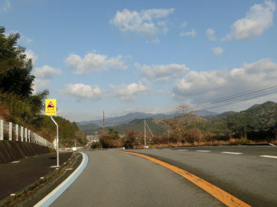 | ごく緩やかにアップダウンしている2車線快走路を淡々と走る。前述のとおり、交通量はやや多いが信号機や急なカーブも少なく流れは良好である。奈良集落を過ぎると沿線の家屋が少なくなり、成川集落以降には若干急なカーブも存在している。 | ||
